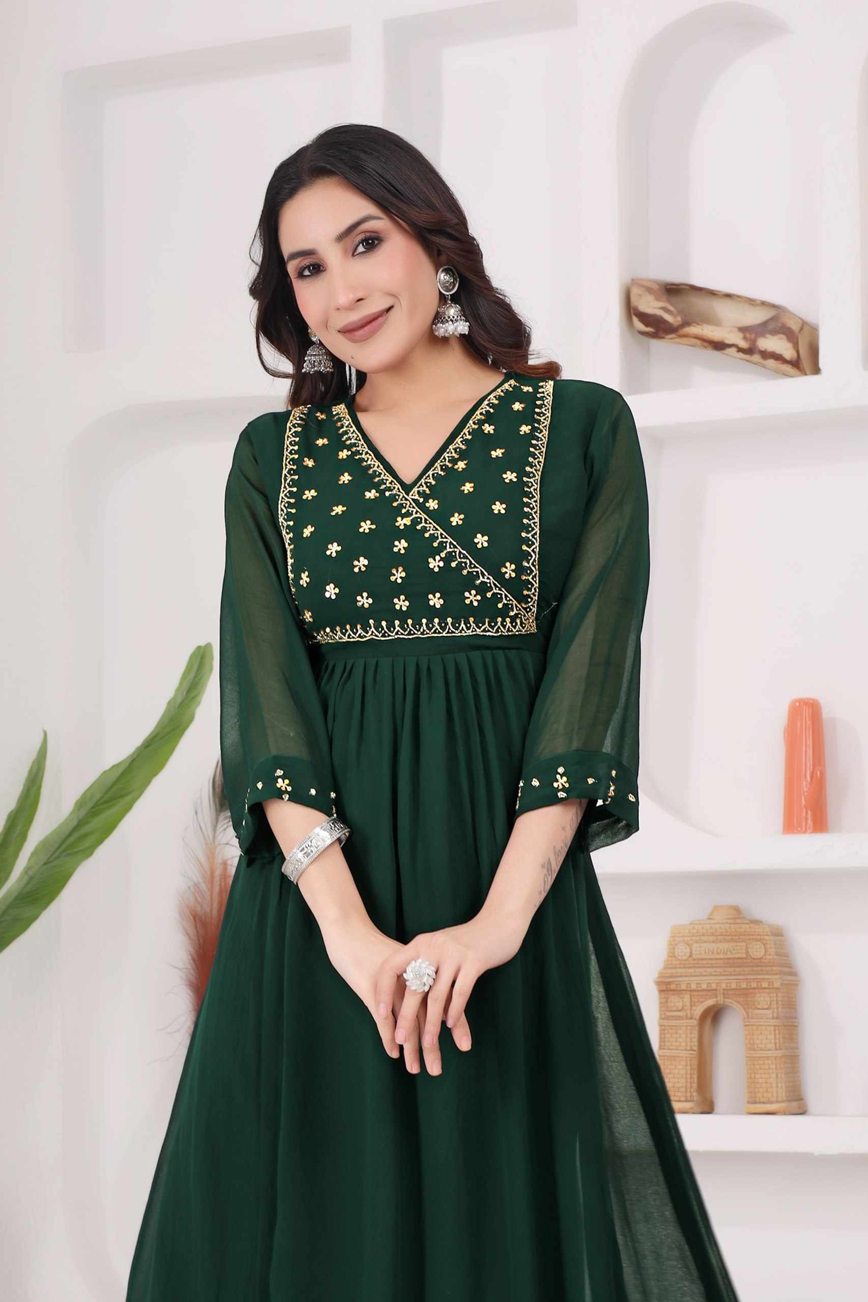 WM12 GREEN BLOOMING GEORGETTE BEAUTIFUL HANDWORK KURTI